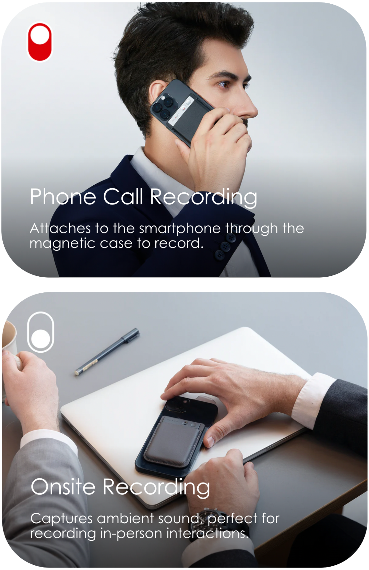 Effortlessly capture every detail with MINDMATE.AI – thanks to integrated phone and on-site recording modes.
